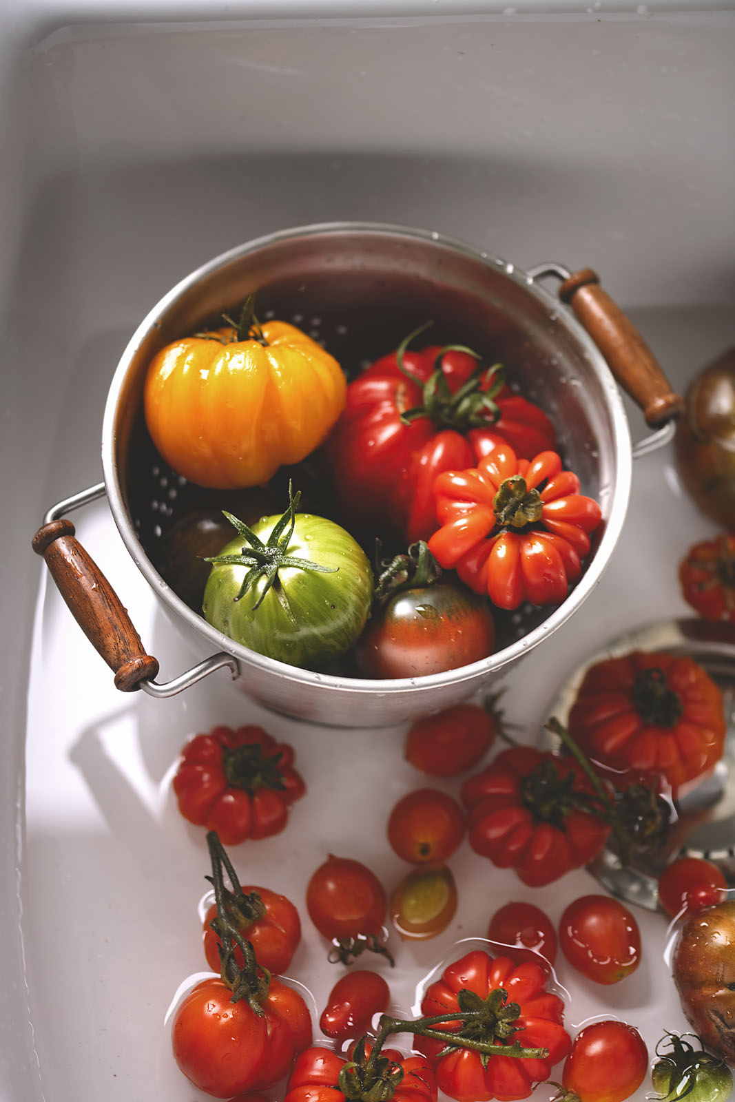 And for me, personally, the colours on the plate lift this otherwise ultra basic dish to another level – which can visually impress your guests, too, if you serve it, let’s say, on a summer’s day as a side to a BBQ meats if not using mozzarella.