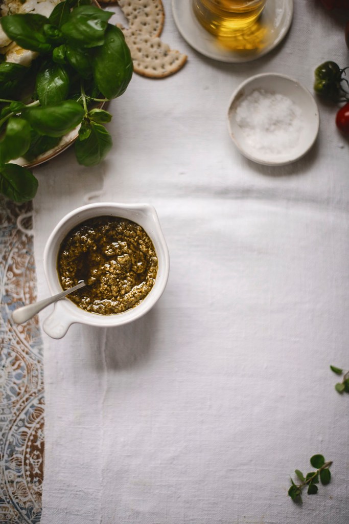 And, if you wonder, yes, it goes well with mozzarella – the Parmesan in pesto adds that creaminess and saltiness, and together with your tomatoes, it all just pairs nicely.