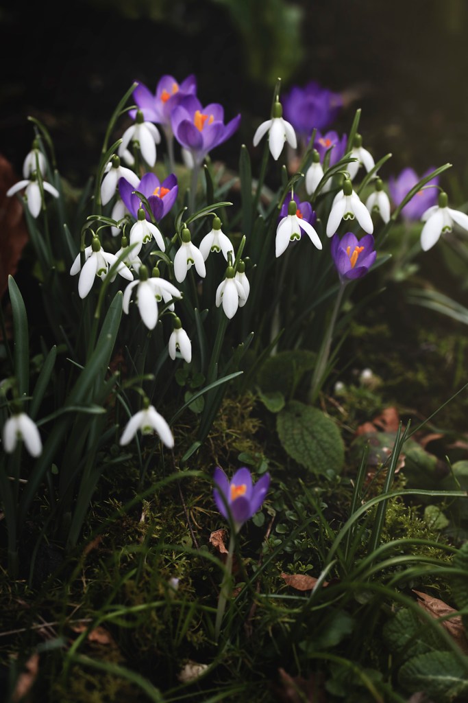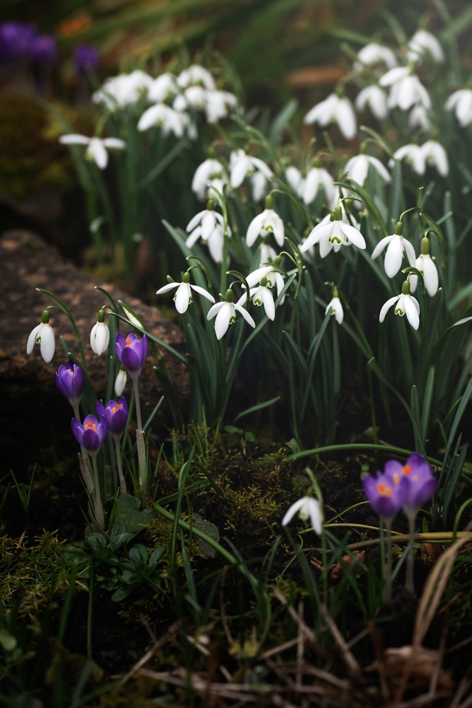 That little garden is covered as if small carpets were thrown along each side of the stepping stone pathway, many snowdrops and crocuses line each little corner, every mossy nook, every until now completely quiet spot.