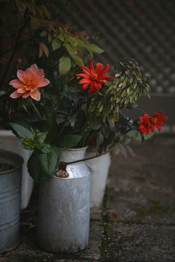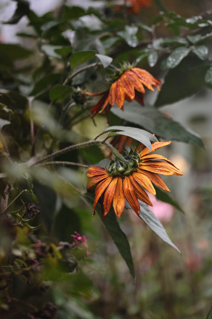 Some of the flowers I grow in my little country garden pictured here after that rain: Helianthus annuus ‘Claret’; Gladiolus murielae; Dahlia ‘Jowey Winnie’; seedheads Nigella damascena; Chrysanthemum; Cosmos bipinnatus ‘Apricotta’; Dahlia ‘Mister Frans’; Dahlia ‘Bishop’s Children’; seedheads Agapanthus africanus.